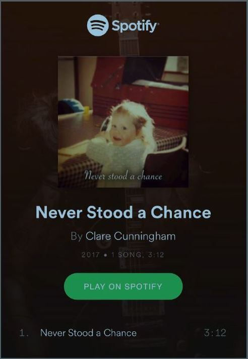 Go check it out : Spotify : https://open.spotify.com/artist/0E5HcITxx6vAljUf9vdCuN iTunes : https://itunes.apple.com/se/artist/clare-cunningham/id1005311063 Youtube : https://www.youtube.com/clarecunningham86 Reverbnation : https://www.reverbnation.com/clarecunningham Soundcloud : https://soundcloud.com/clarecofficial